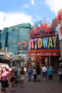 La ville attenante aux chutes offre malheureusement une vue de la décadence touristique ! Nous sommes interloqués  par les nombreux « casinos pour enfants » trônant à côté de vrais casinos (pour adultes), un monde de « Mickey », où l’argent sert uniquement à se divertir ! Le plus incroyable, c’est que visiblement c’est les plus pauvres qui se font le plus attirer par toutes ces lumières qui brillent….