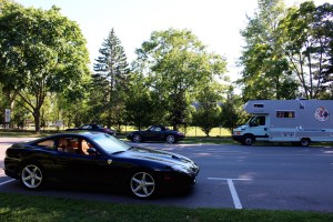 A Kingston, nous découvrons à la Marina une manifestation de « Power Boat ». Nous sommes estomaqués par la monstruosité de ces machines, une débauche d’argent. L’ambiance est rock-on-roll avec de jolies « Bimbos » se trémoussant le long des carrosseries reluisantes. Nous apprécions cet étrange spectacle et ressentons l’omniprésence américaine toute proche. En effet, de l’autre côté du fleuve, nous apercevons les côtes américaines…