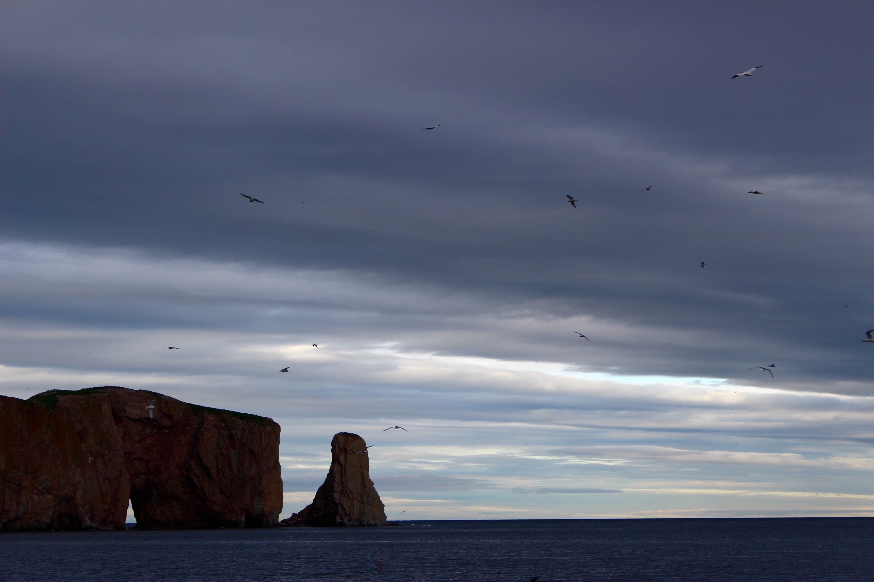 Le petit village touristique de Percé doit sont nom à un rocher, en mer, qui a un énorme trou à sa base. Malheureusement, les conditions météos n’étaient pas favorables pour aller observer les « Fou de Bassant » sur l’île Bonaventure ! Toutefois, nous avons quand même pu admirer cet oiseau au bout d’une jetée. Sa technique de pêche est spectaculaire ! D’une envergure de 1,80 mètre, il plonge depuis une trentaine de mêtre de hauteur à pic dans la mer pour chercher les bans de poissons. Il peut descendre à plusieurs dizaine de mêtres de profond…  En soirée, c’est en participant au spectacle humoristique « une histoire de fou, la transformation d’un homme en Fou de Bassant » que nous avons pu nous familiariser un peu plus avec ce magnifique oiseau migrateur. D’ailleurs, nous risquons de le recroiser au Mexique où il passe l’hiver !