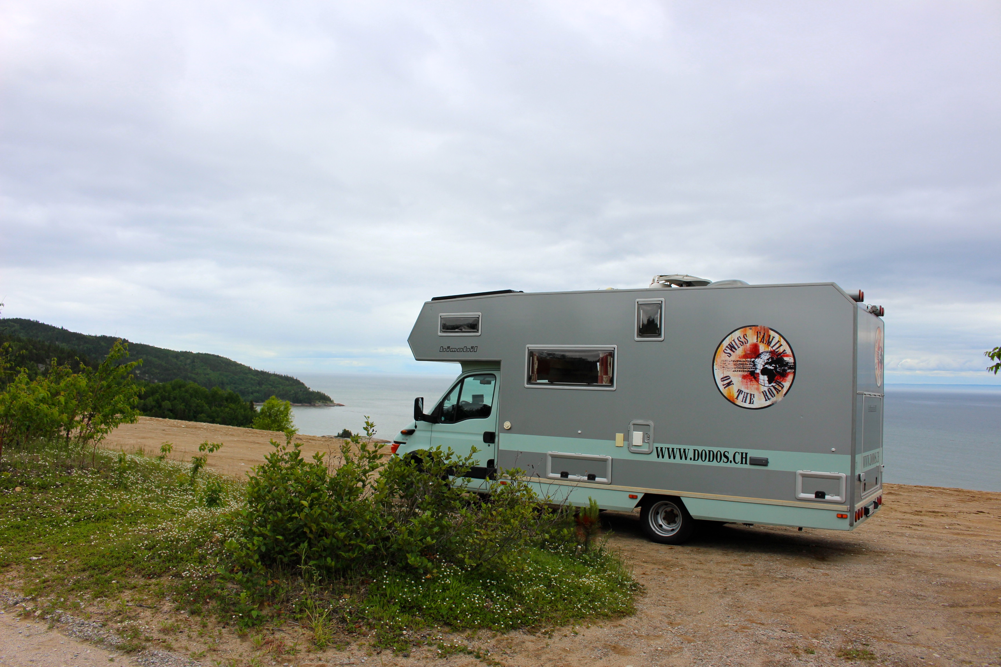 Après avoir parcouru une route sinueuse, nous avons pris le ferry pour arriver à Tadoussac. Nous prévoyions de rester quelques jours à cet endroit. Une immense dune de sable surplombant la mer à été notre premier point de chute. Au loin, nous apercevons le ballet majestueux des baleines !