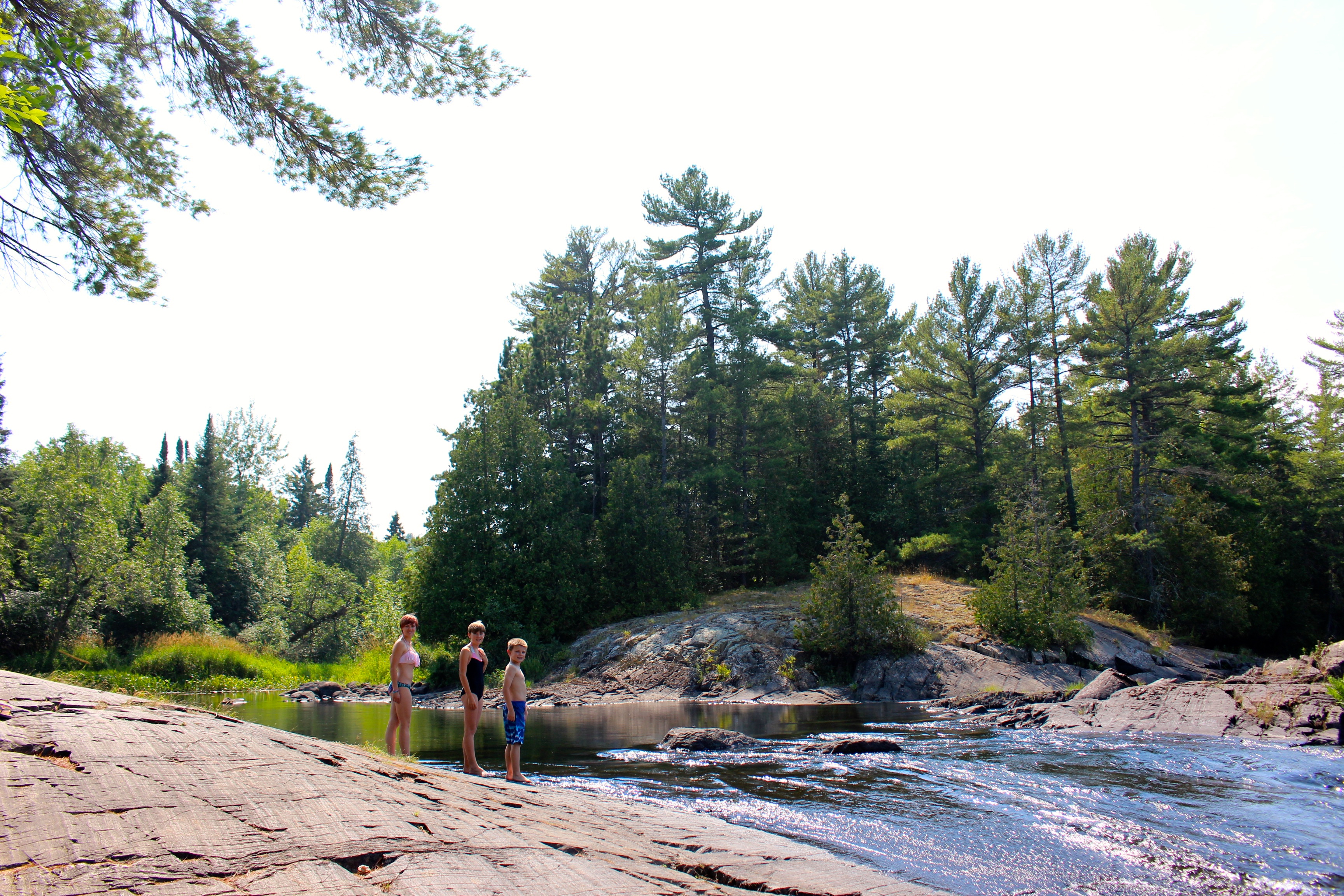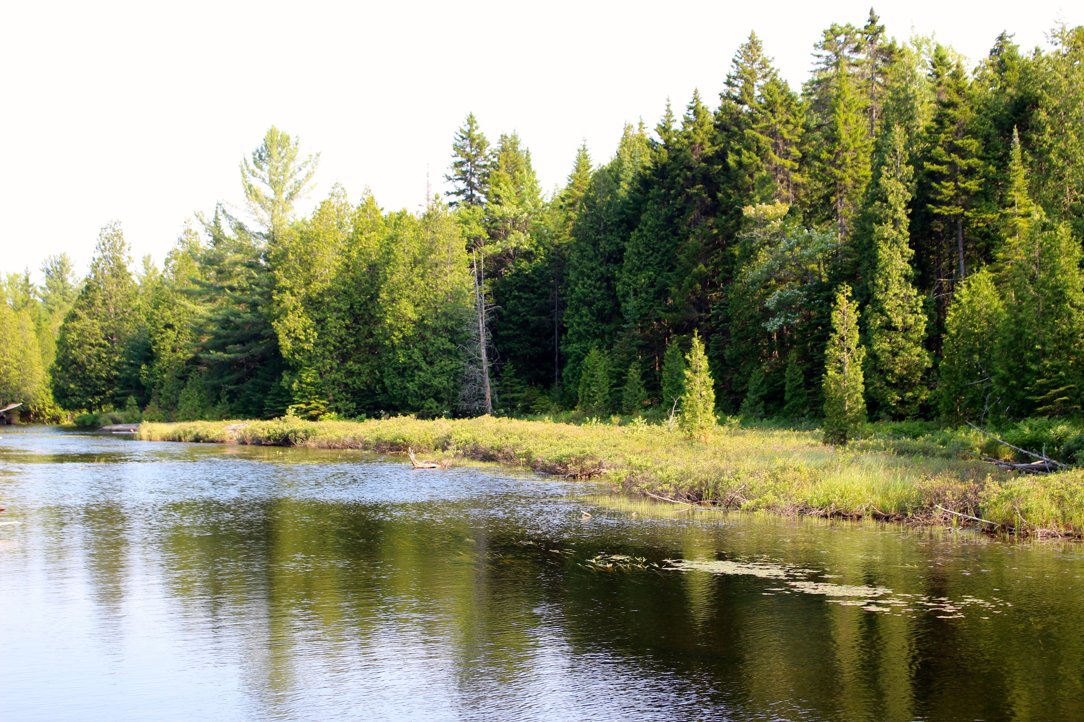 Nos petites fugues nous ont fait prendre du retard sur notre programme. Dès lors, nous devons rouler plus qu’à l’accoutumer. Toutefois, comme nous approchons des Grands Lacs le paysage devient plus sauvage ce qui nous plaît énormément. Des petits endroits sympathiques pour se baigner ne manquent pas…