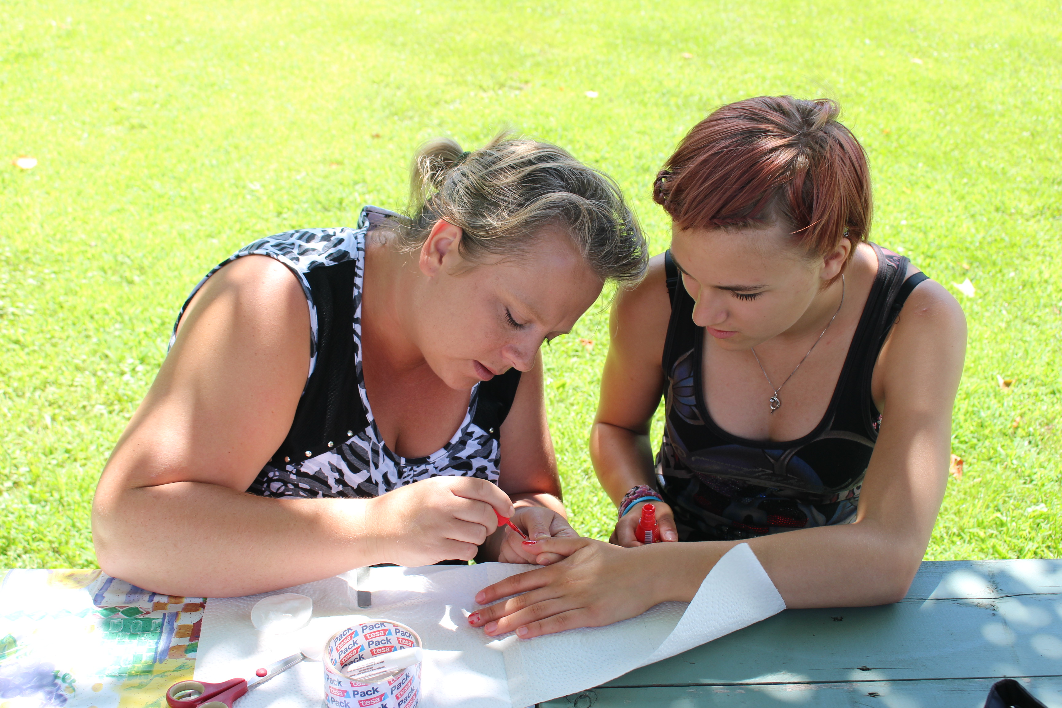 Anna en discussion avec les soeurs Beck, toutes deux enseignantes, adorent notre projet…