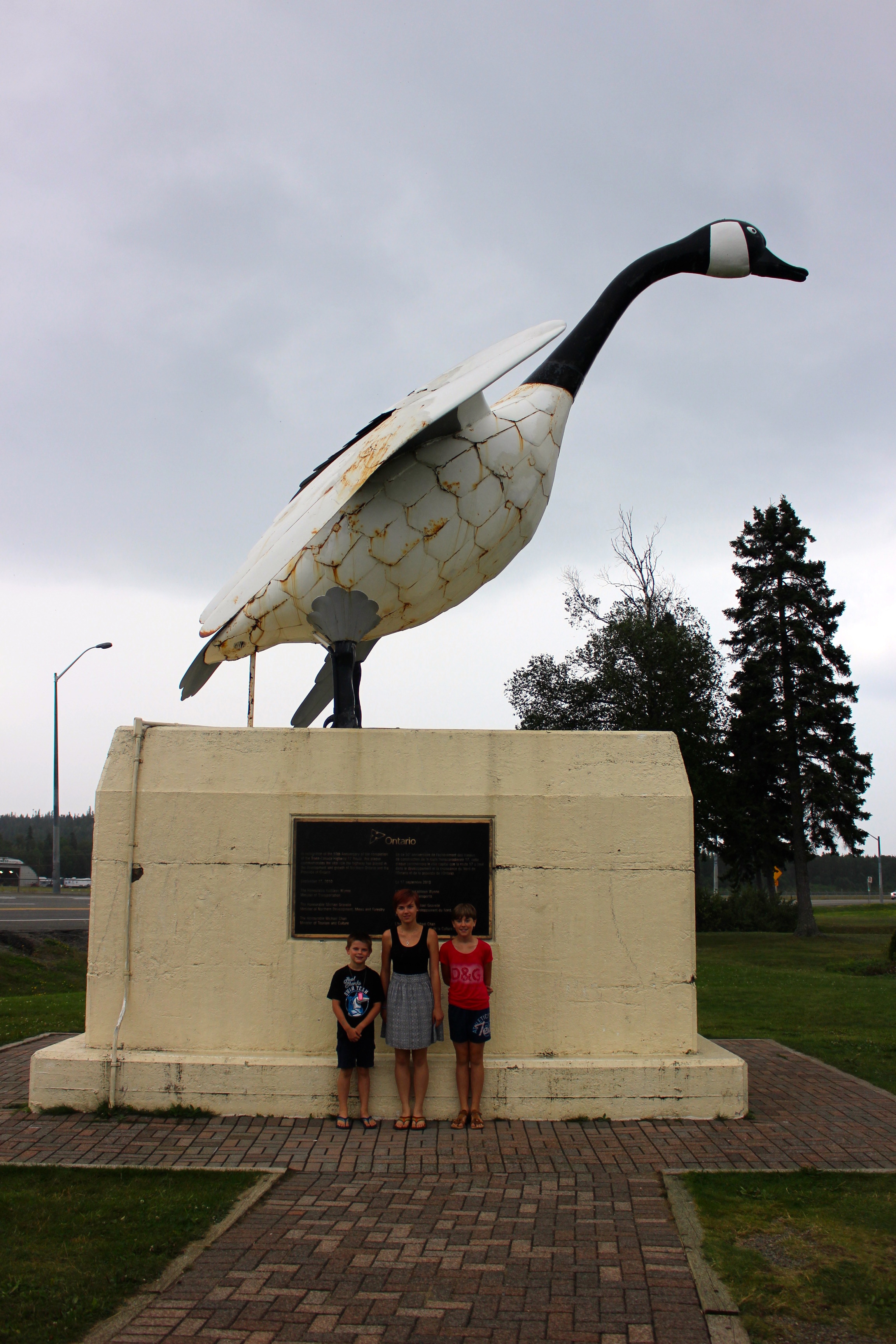Nous roulons ensuite jusqu’à Wawa et découvrons l’emblème de la ville qui est une grande oie de Bernacle. Ensuite, nous nous installons au bord d’un joli petit lac. La température chute à 12°C, brrr…