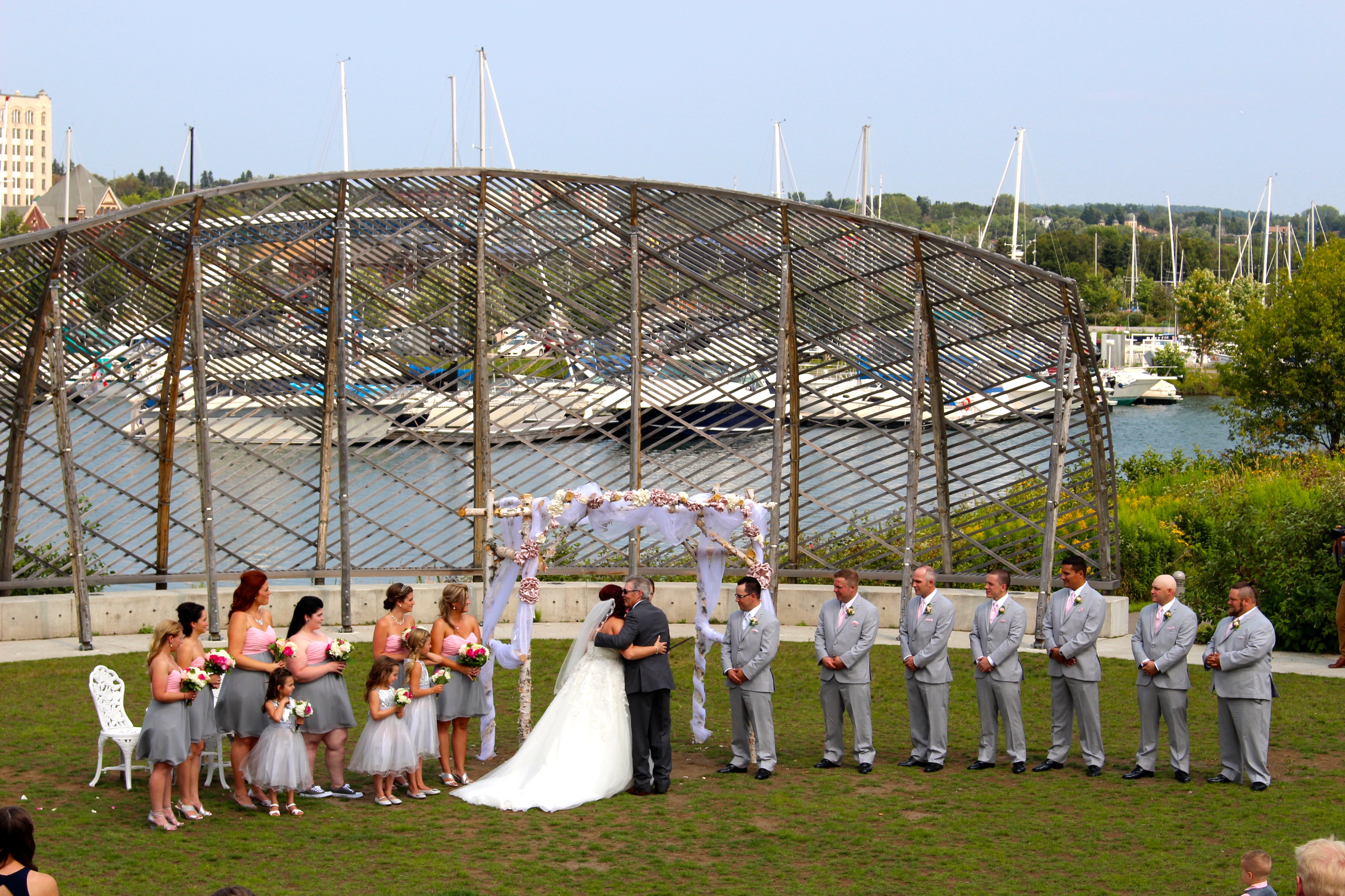 L’asphalte nous conduit à Thunder Bay, ville de 100’000 habitants perdue au milieu de nulle part ! Nous sentons qu’il y a moins de richesse comparé à l’opulente cité de Toronto ! Toutefois, il semble quand même y faire bon vivre ! Nous nous installons pour changer à la marina. Par chance, nous assistons à un mariage typiquement « américain », les filles ont adoré…