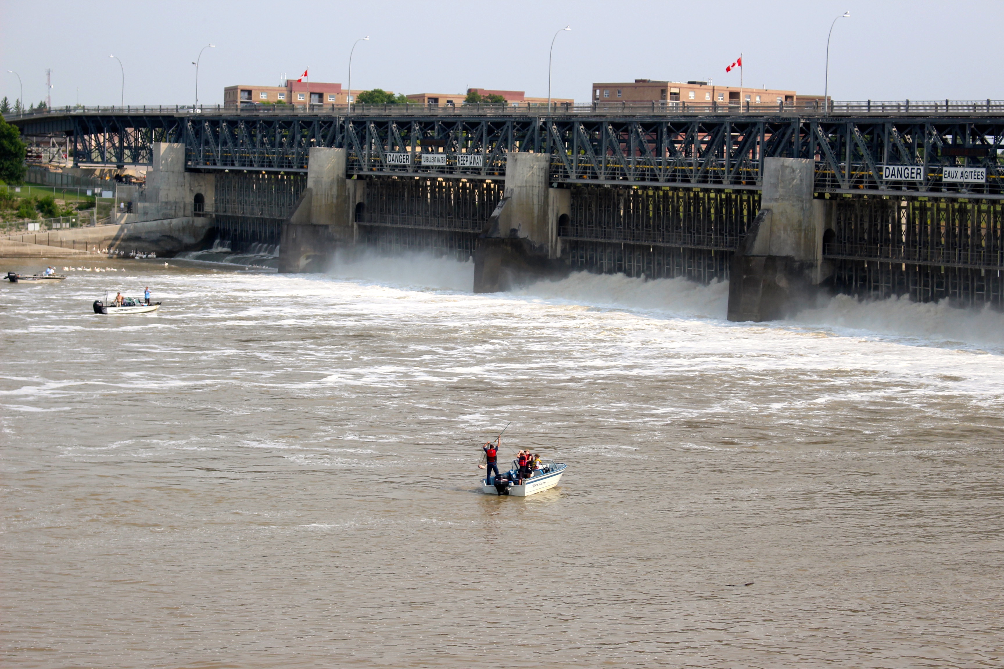 En passant par Lockport nous remarquons une petit armada de bateaux entrain de se battre contre le courant occasionné par un immense barrage ! Nous nous arrêtons et découvrons que toutes ces embarcations contiennent, en fait, des pêcheurs. Ces derniers sortent des prises impressionnantes sous le regard médusé de pélicans affamés !