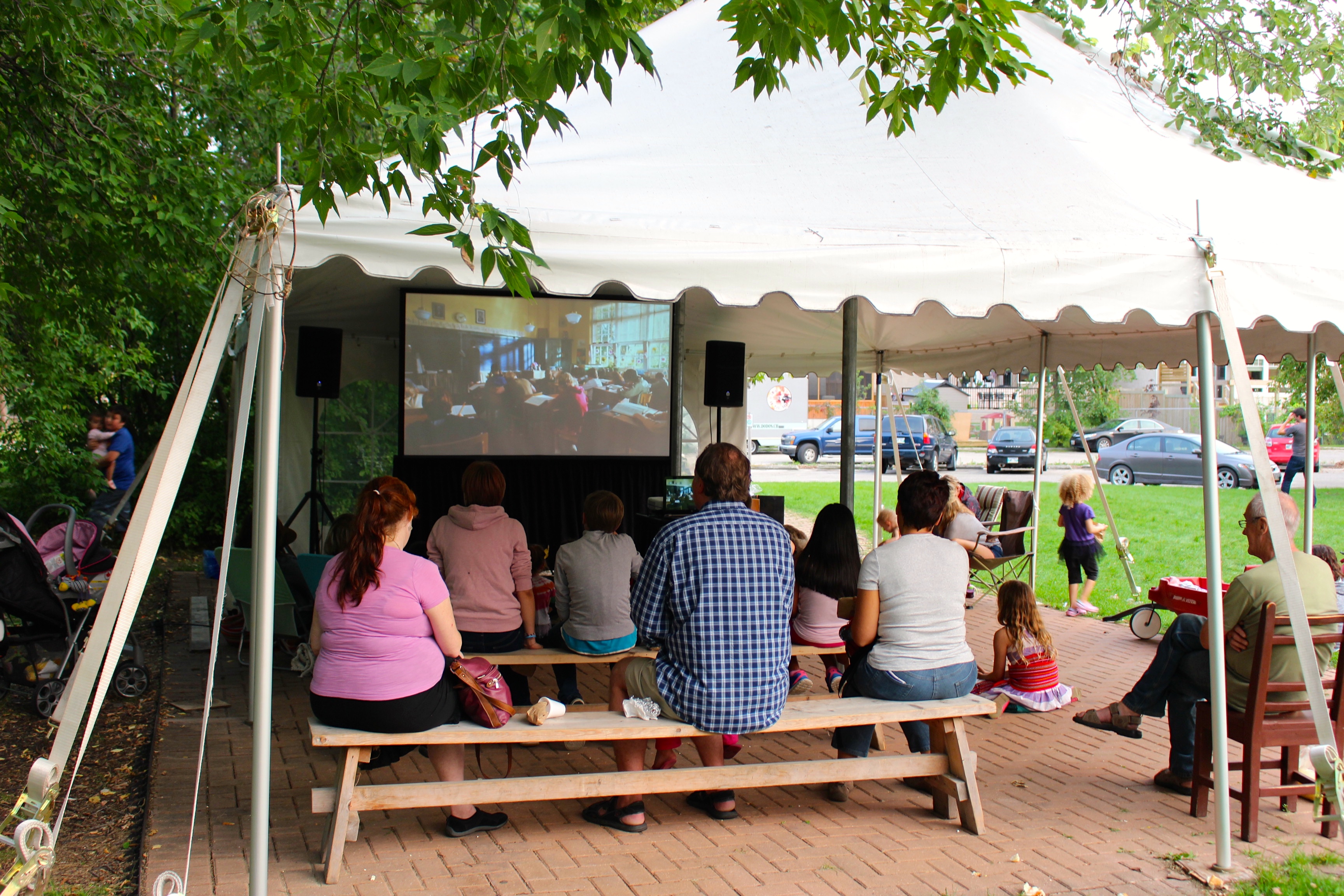 La fête de l’épluchette de maïs organisée par Parc Canada à la Maison Riel offrait l’occasion aux enfants de voir un film au cinéma plein air. De plus, nous avons eu la chance de pouvoir souper gratuitement, maïs, hot-dog et pain « Bannock ».