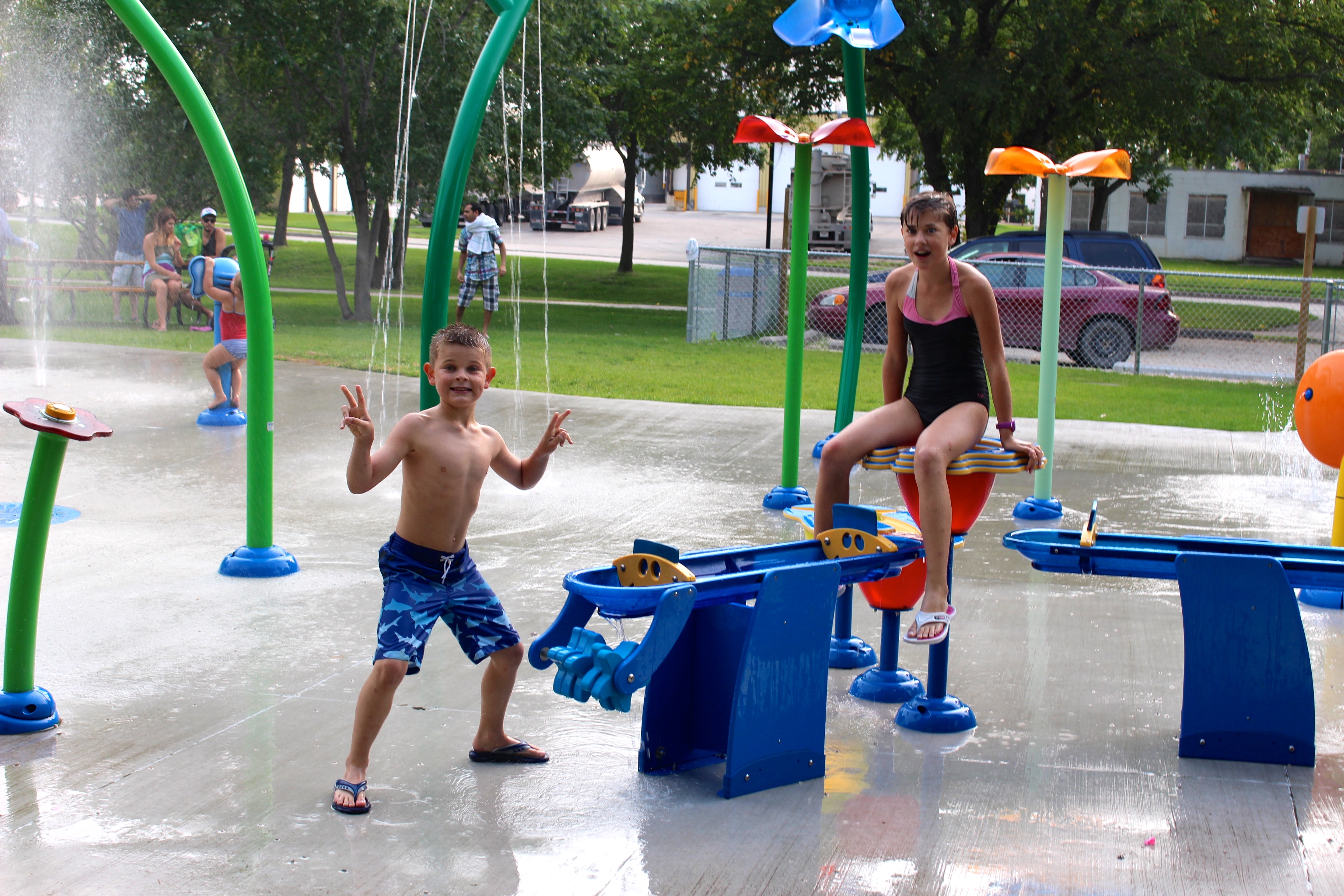 Aujourd’hui il fait encore 33°C avec un taux d’humidité de 80%, alors nous décidons de faire un petit « break » au parc aquatique de Steinbach. Nous y passerons la journée à barboter… Génial ces infrastructures que les Municipalités offrent gracieusement à leurs résidants et visiteurs.